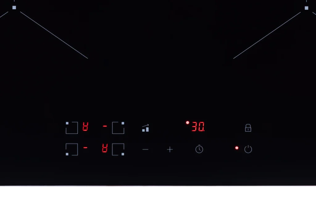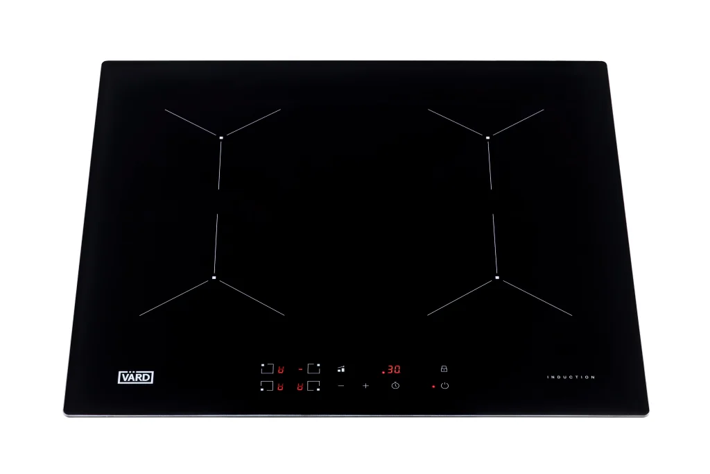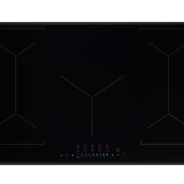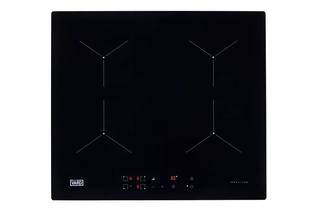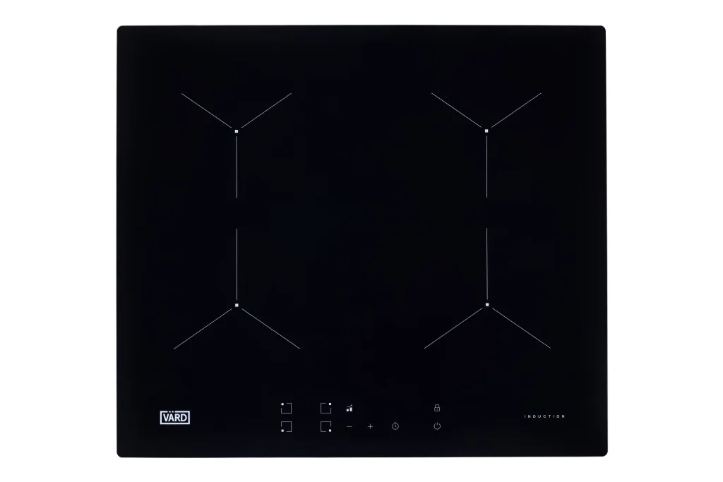 Встраиваемая индукционная варочная панель чёрного цвета — это сочетание скорости и удобства индукционного нагрева с элегантным дизайном из чёрного стекла с фасками.